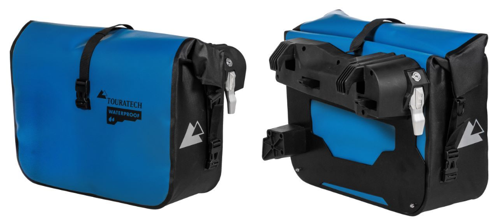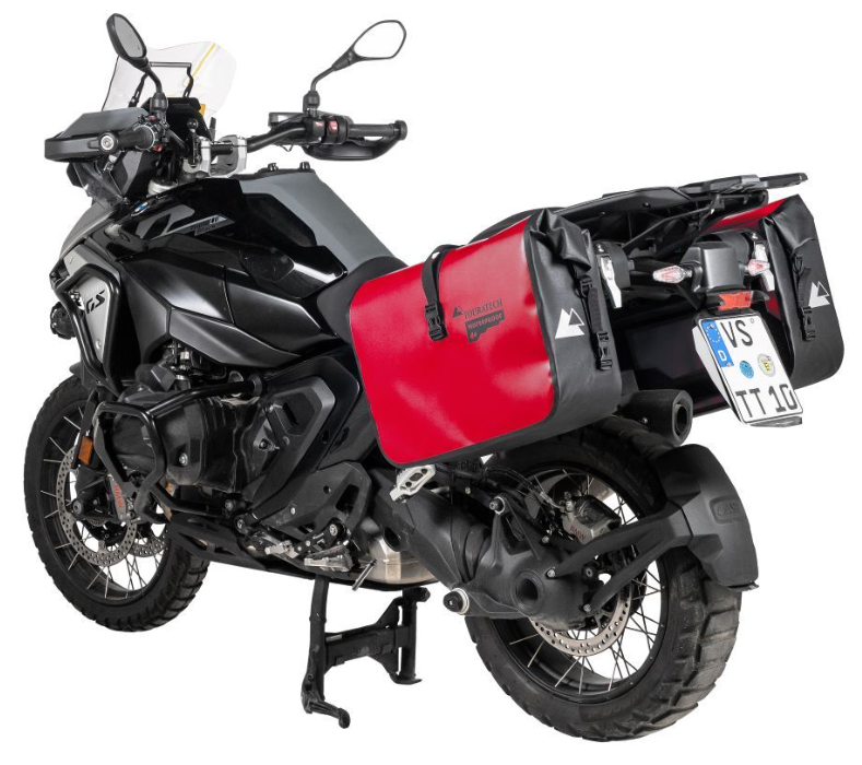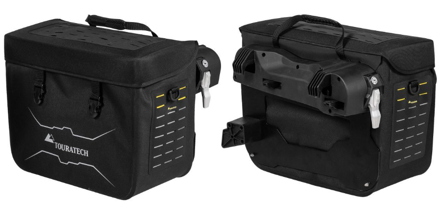 Touratechの「プラグ&トラベル」ソフトラゲッジシステムは、 BMWR1300GSの純正バリオパニアラックに直接装着が可能です。